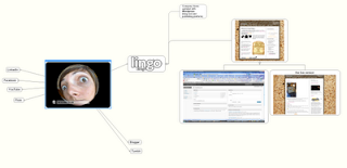 As the new Lingo site features a feed of my blogger posts, (as it did before) but now also has the new functionality of a wordpress blog, I am creating a mindmap to demonstrate how my blog posts work in relation to each other and the various sites I use. Here’s the beginning, showing me in the middle, and one arm of the tree which is for the Lingo wordpress blog. The screenshots show the control panel of wordpress and the online version of the page.