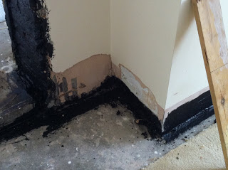 Matt in the garden cutting more wedges for 2nd bedroom floor