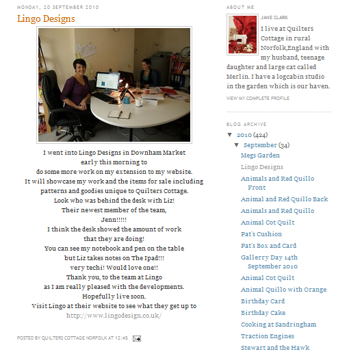 Jane Clark’s Quilters Cottage blog, featuring Lingo